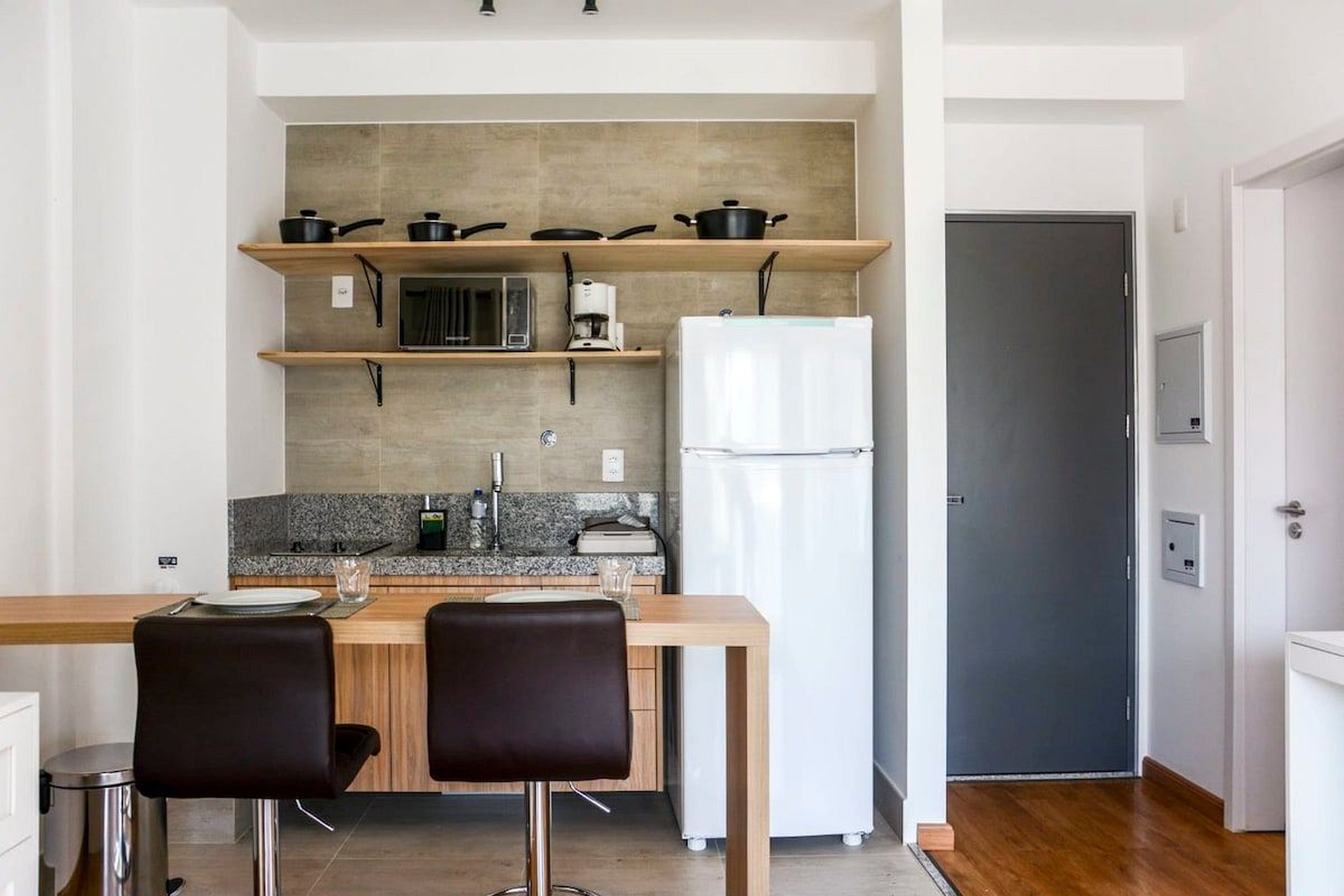 O espaço é apropriado para casais e solteiros. O apartamento possui cama queen-size, cozinha, cafeteira, TV a cabo com pacote de canais básicos da Net e wi-fi para lazer e trabalho. Temos 1 vaga de garagem inclusa na reserva, não é demarcada por apartamento, é livre. Basta entrar e estacionar, sem obstruir a saída de outro veículo. Por favor, enviar junto dos dados a placa, modelo e cor do veículo.
