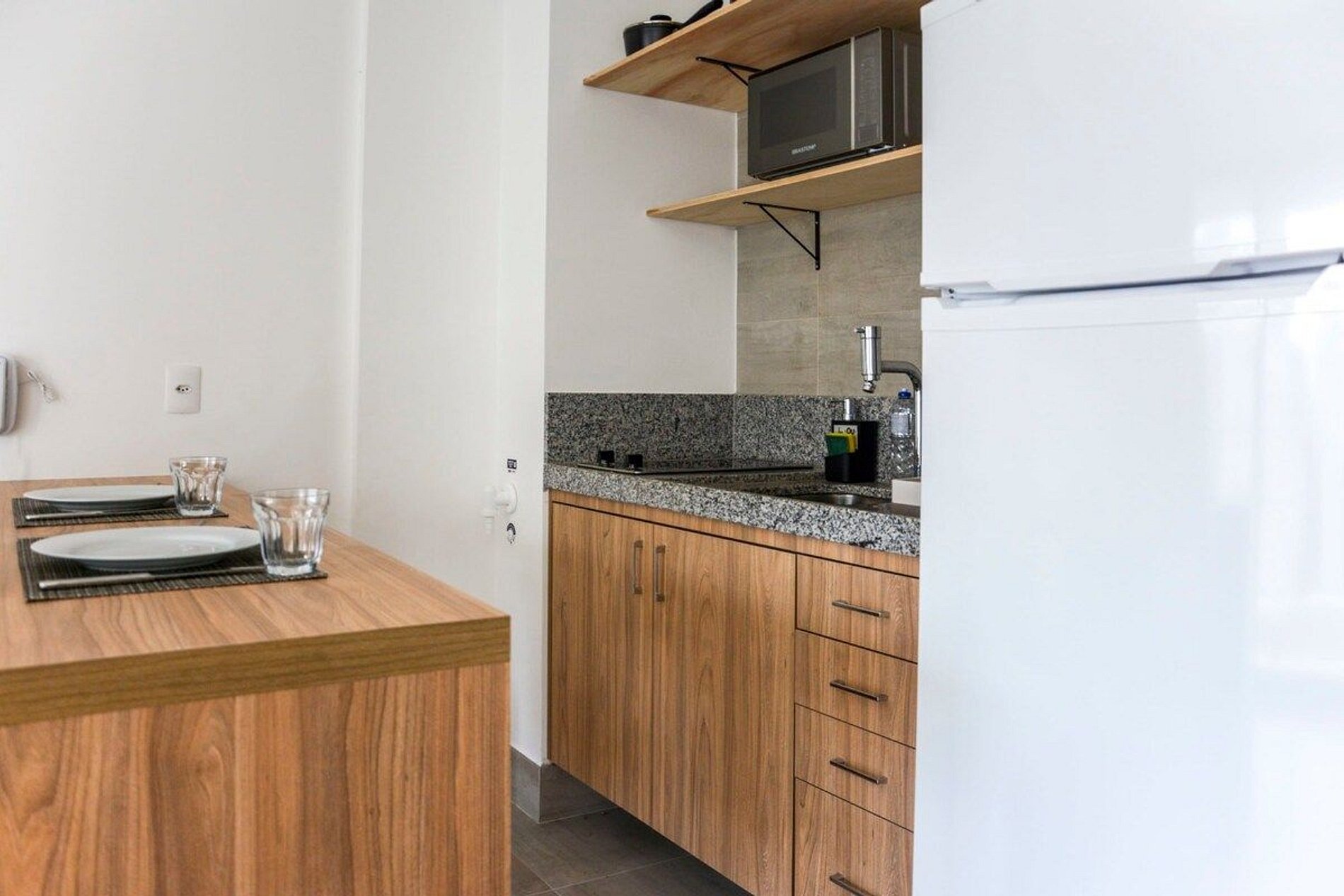 O espaço é apropriado para casais e solteiros. O apartamento possui cama queen-size, cozinha, cafeteira, TV a cabo com pacote de canais básicos da Net e wi-fi para lazer e trabalho. Temos 1 vaga de garagem inclusa na reserva, não é demarcada por apartamento, é livre. Basta entrar e estacionar, sem obstruir a saída de outro veículo. Por favor, enviar junto dos dados a placa, modelo e cor do veículo.
