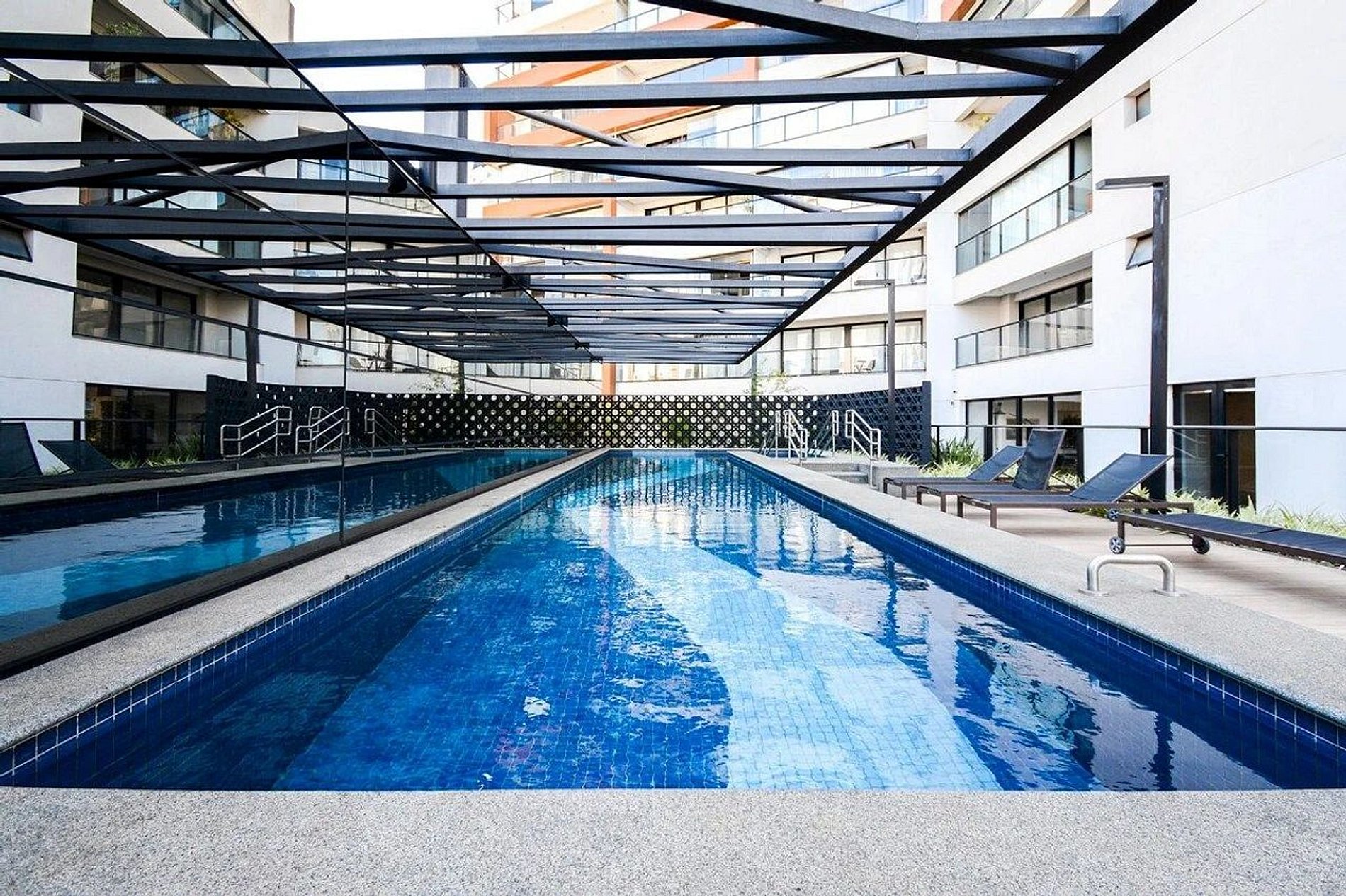 Apartamento decorado em condomínio de alto padrão, situado no coração da cidade, próximo ao hospital São Luiz do Itaim e a clínica OncoStar. Possui uma vaga de estacionamento, Wi-Fi e TV a cabo. Todas as áreas comuns do condomínio como piscina e academia podem ser utilizadas mediante agendamento. Pode consultar na portaria. O preço do apartamento é relacionado ao pernoite, não considerando as áreas comuns. É obrigatório o uso de máscara em todas as áreas comuns (sujeito à multa se não houver res