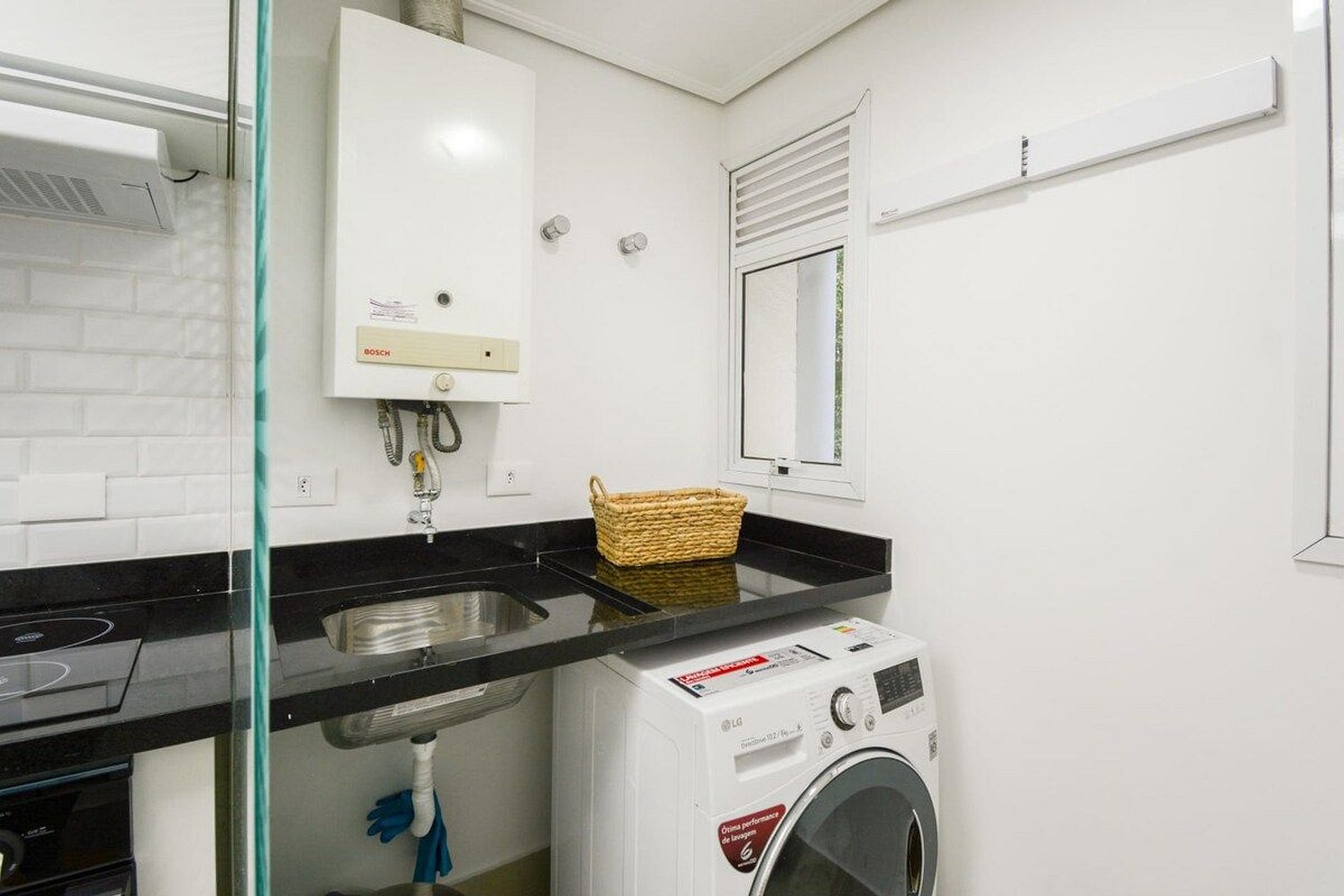 Apartamento de 24m2, decorado pensando no bem estar de viajantes a turismo ou negócios. A sala possui excelente luminosidade e vista agradável. Possui 1 quarto com cama de casal, sala e cozinha. Equipamentos disponíveis no espaço: -2 TVs tela plana -2 AC Cozinha: -Geladeira duplex -Fogão 4 bocas com forno -Micro-ondas -Batedeira -Liquidificador -Espremedor de frutas -Chaleira elétrica -Filtro de água refrigerado -Cafeteira elétrica com porta filtro (traga seu filtro e pó para usufruir!) -Máquina de lavar roupas -Ferro de passar