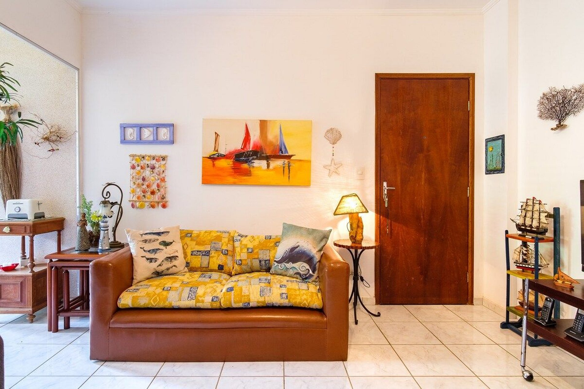 Apartamento de 70m2 em condomínio, com dois quartos, uma suíte, sala, varanda, cozinha e área de serviço. Localizado na Praia do Sapé, entre as praias de Maranduba e Lagoinha, em Ubatuba, com toda a infra-estrutura praiana. Próximo de Mercados, farmácias, açougues, lojas de souvenir, sorveterias, restaurantes, quiosques, fábrica de gelo e adegas. Além das praias, há cachoeira, trilhas, ruínas, passeios de escunas e outras atividades para todo gosto de lazer na região. Wi-Fi no Condomínio.