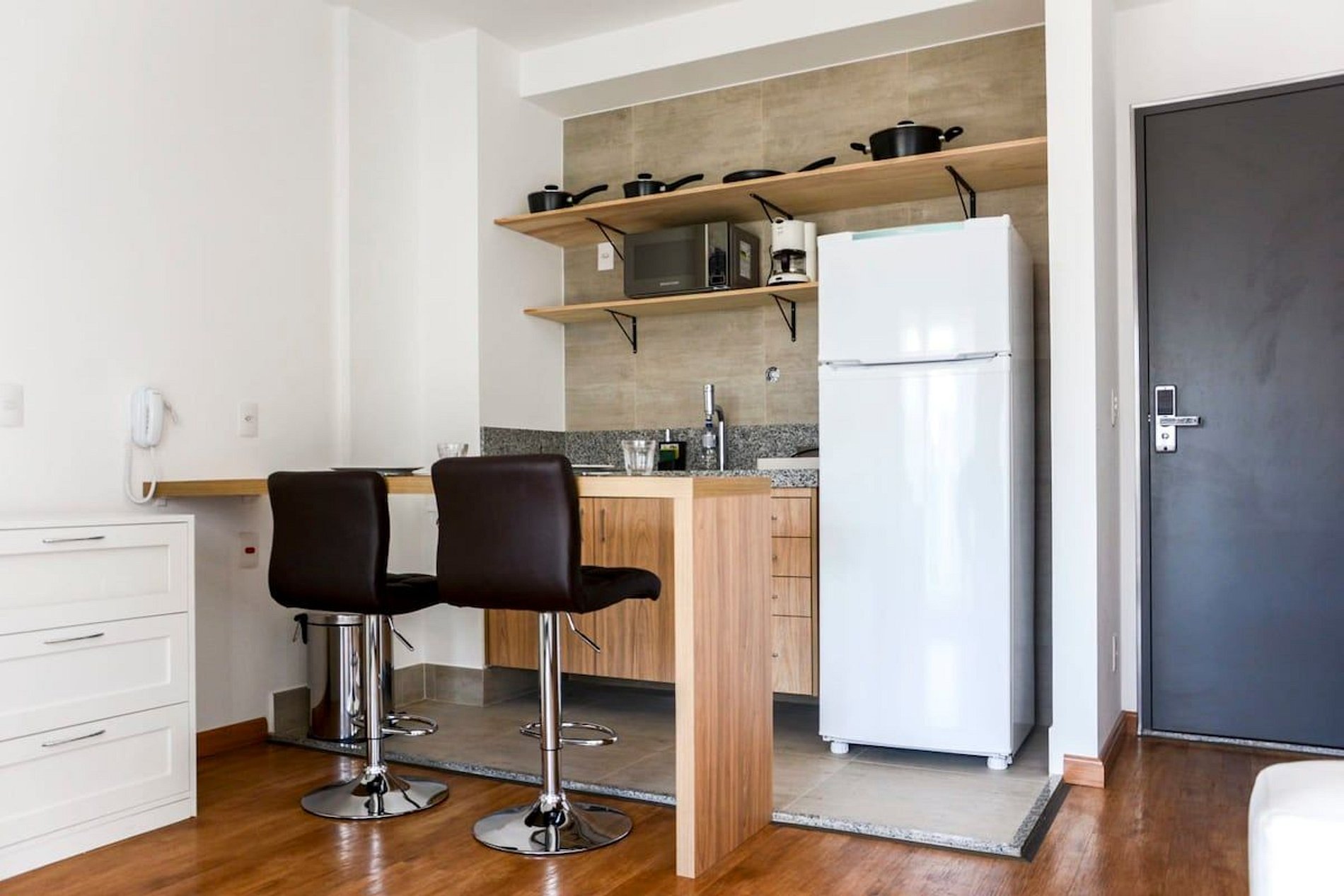 O espaço é apropriado para casais e solteiros. O apartamento possui cama queen-size, cozinha, cafeteira, TV a cabo com pacote de canais básicos da Net e wi-fi para lazer e trabalho. Temos 1 vaga de garagem inclusa na reserva, não é demarcada por apartamento, é livre. Basta entrar e estacionar, sem obstruir a saída de outro veículo. Por favor, enviar junto dos dados a placa, modelo e cor do veículo.