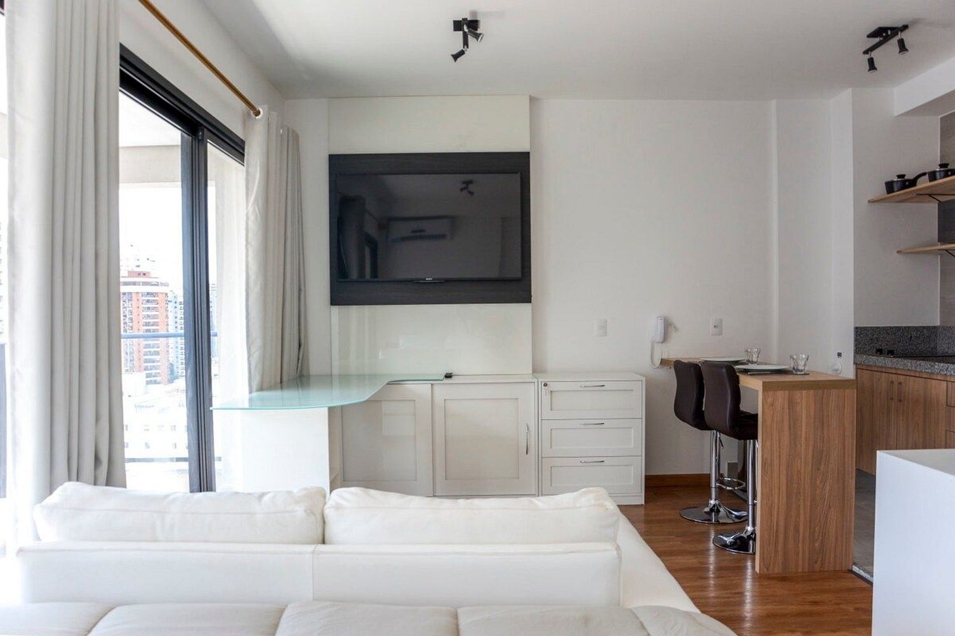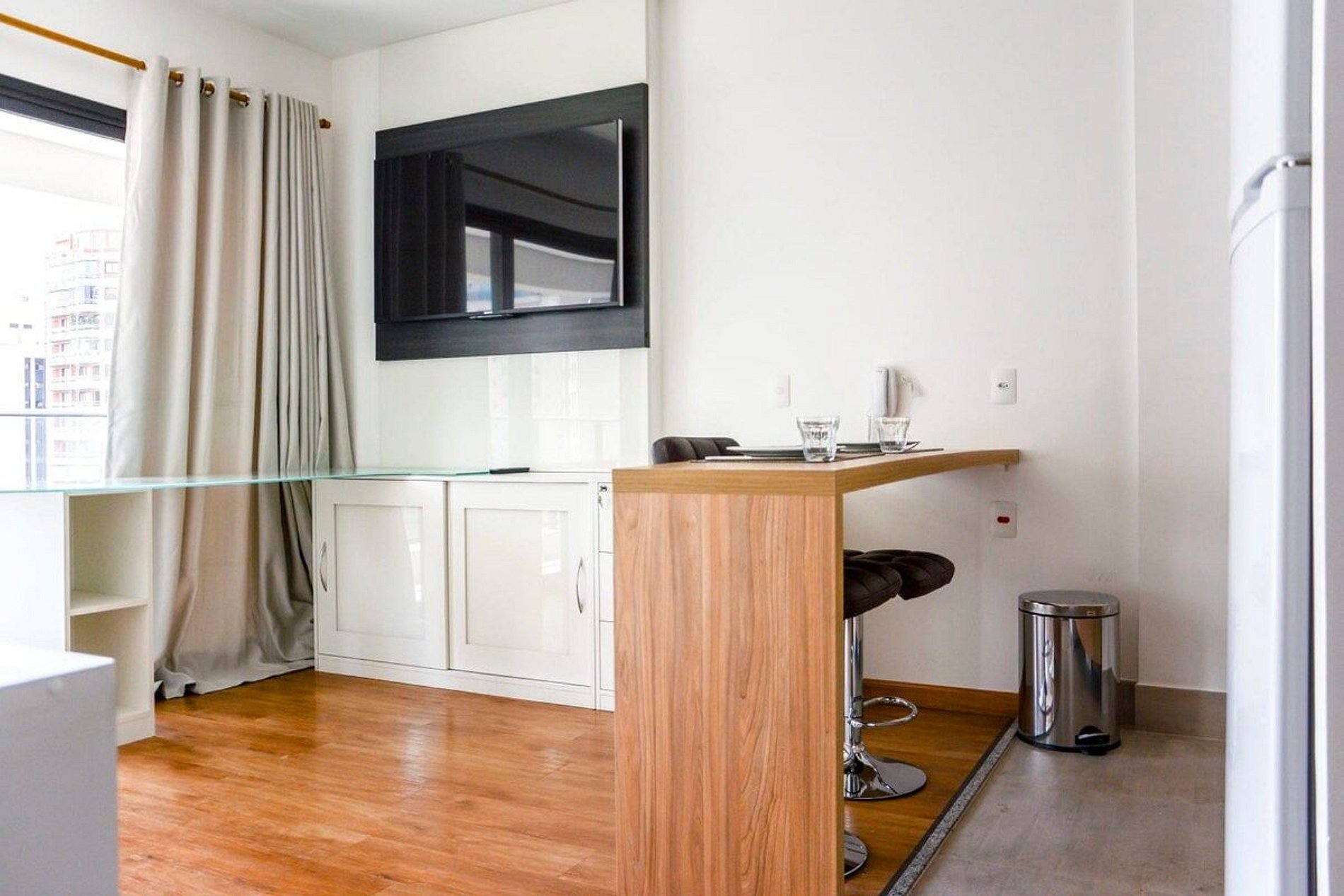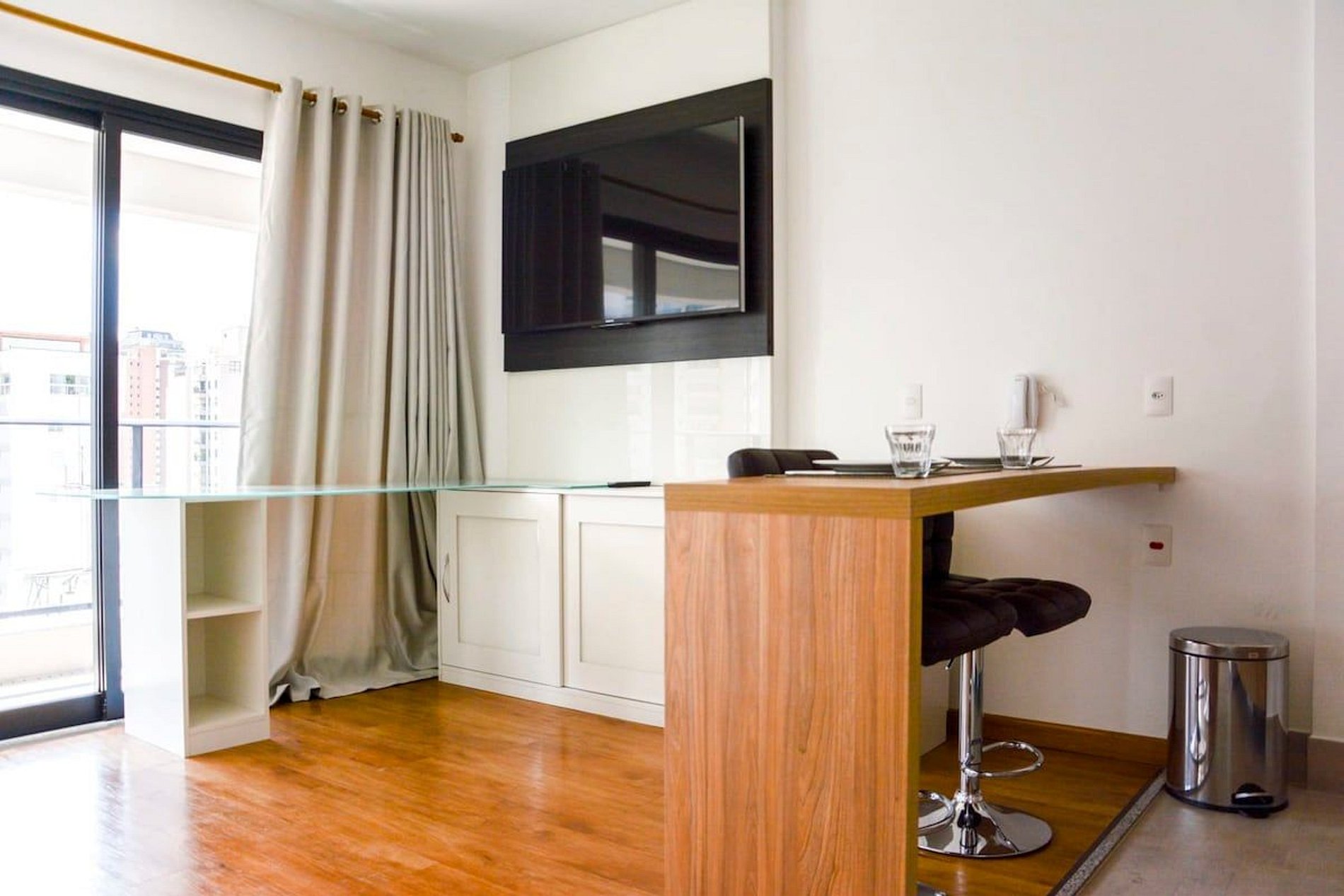 Apartamento decorado em condomínio de alto padrão, situado no coração da cidade, próximo ao hospital São Luiz do Itaim e a clínica OncoStar. Possui uma vaga de estacionamento, Wi-Fi e TV a cabo. Todas as áreas comuns do condomínio como piscina e academia podem ser utilizadas mediante agendamento. Pode consultar na portaria. O preço do apartamento é relacionado ao pernoite, não considerando as áreas comuns. É obrigatório o uso de máscara em todas as áreas comuns (sujeito à multa se não houver res