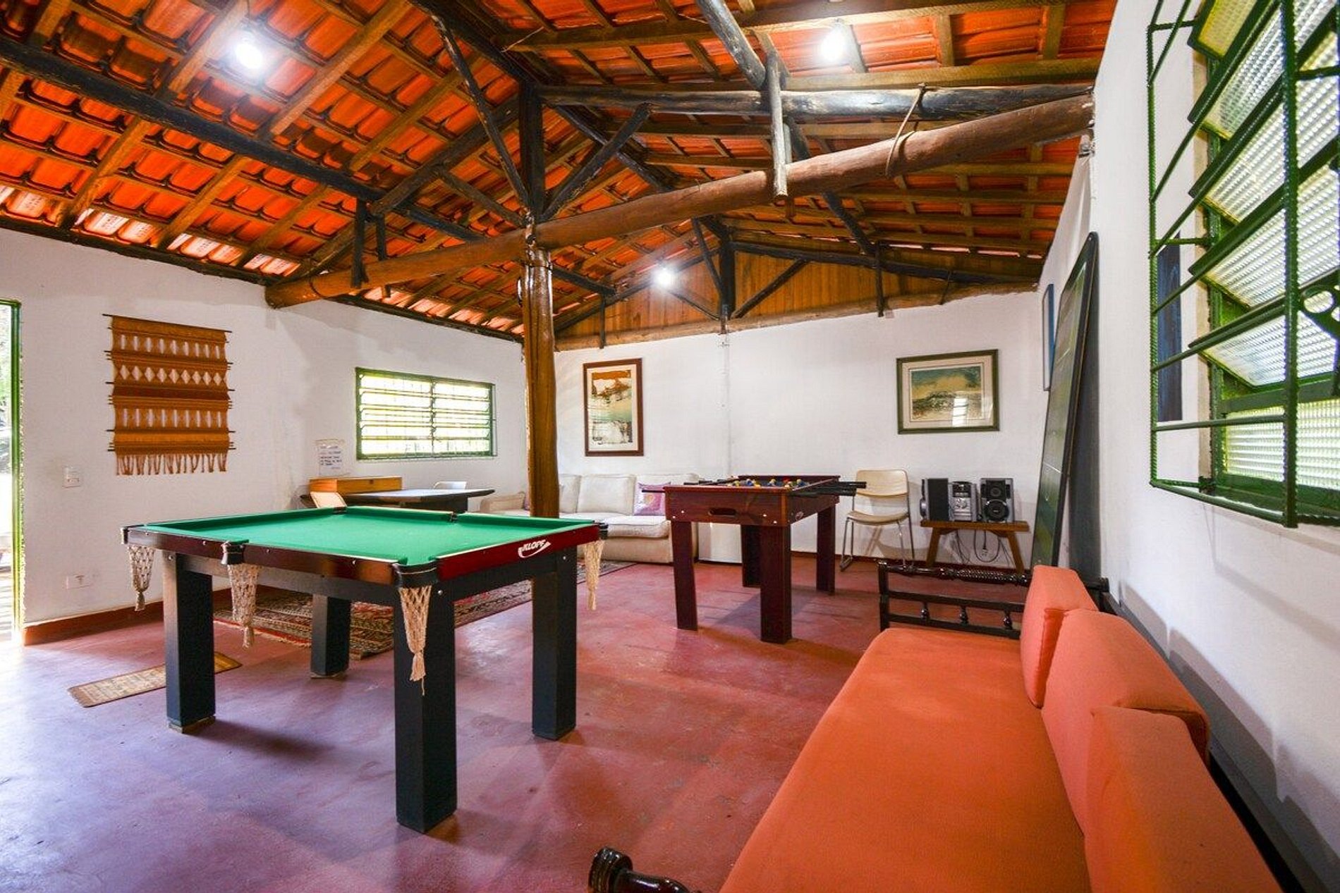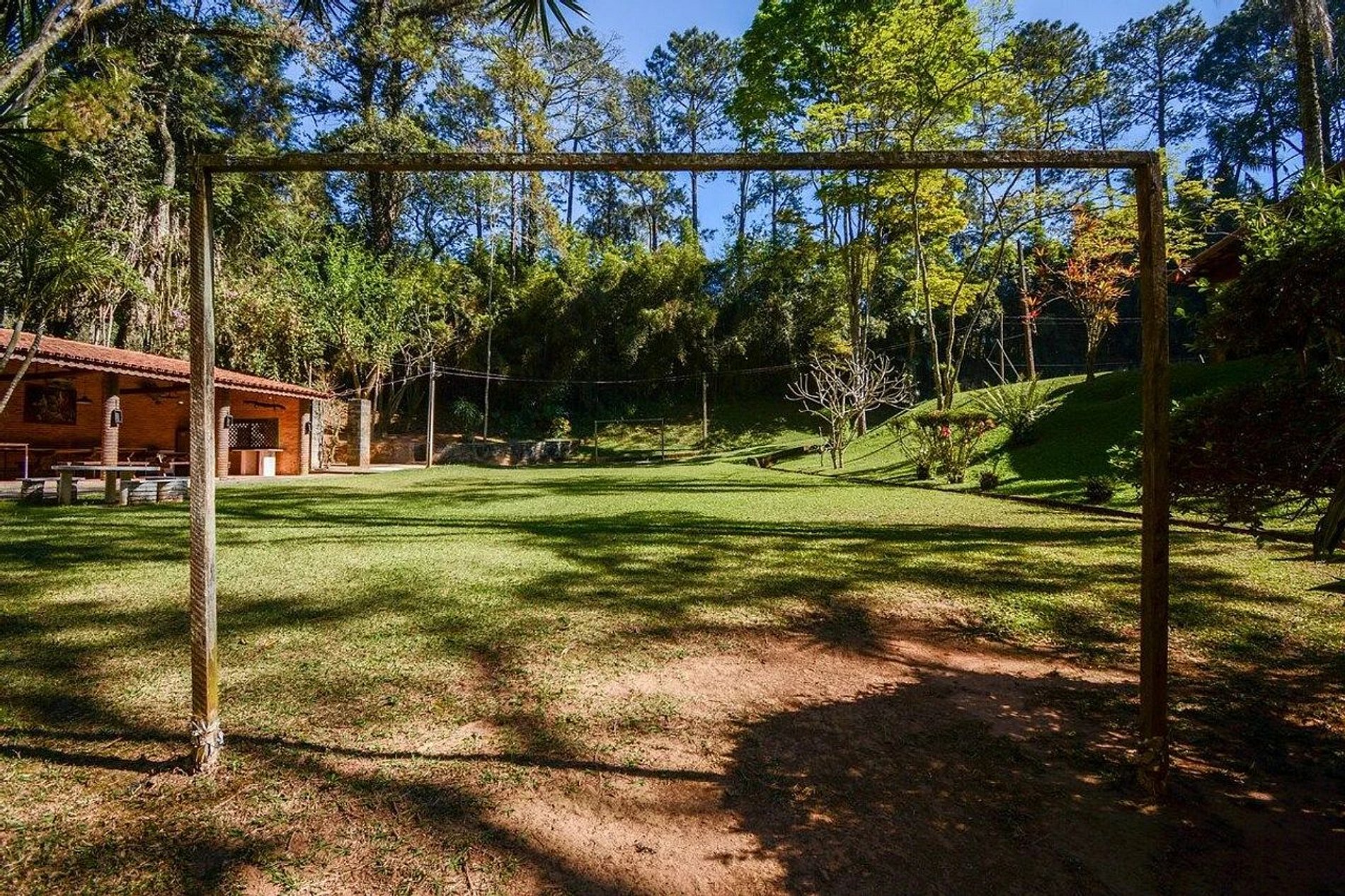 Este acolhedor espaço oferece múltiplos ambientes, criando uma atmosfera íntima e relaxante, situado a apenas 50 minutos de São Paulo. A presença de uma lareira e um sistema de ventilação asseguram conforto durante todas as estações do ano. Na área externa, os hóspedes podem desfrutar de uma churrasqueira, uma piscina convidativa, um campo de futebol gramado, uma varanda coberta e uma sauna seca de estilo escandinavo.