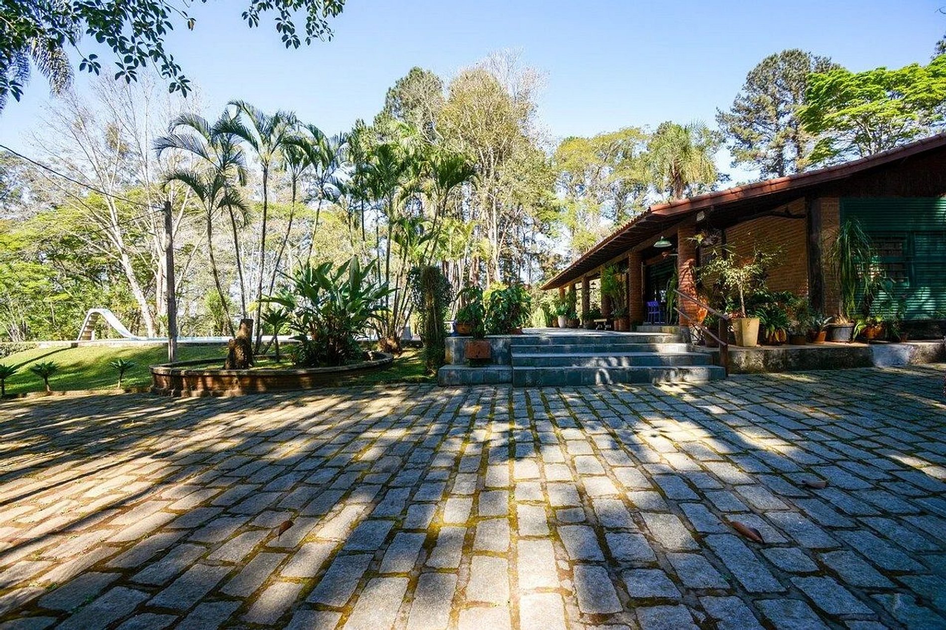 Uma equipe zelosa de caseiros está empenhada em cuidar das áreas externas da propriedade, assegurando uma estadia verdadeiramente excepcional. A moradia dos caseiros está estrategicamente localizada na entrada do sítio, a uma distância de cerca de 150 metros da casa principal. Além disso, dois cães encantadores fazem parte do ambiente, contudo, eles permanecem em uma área distinta e não têm acesso à casa.