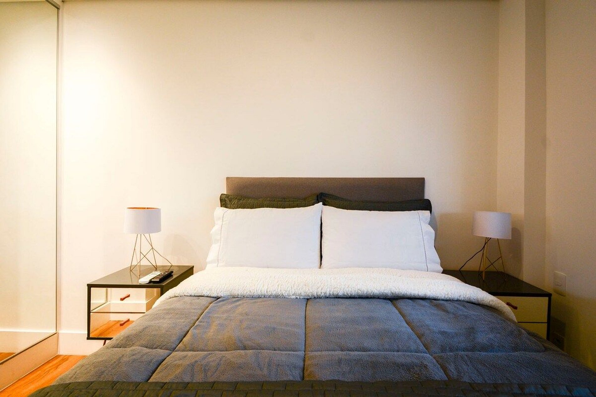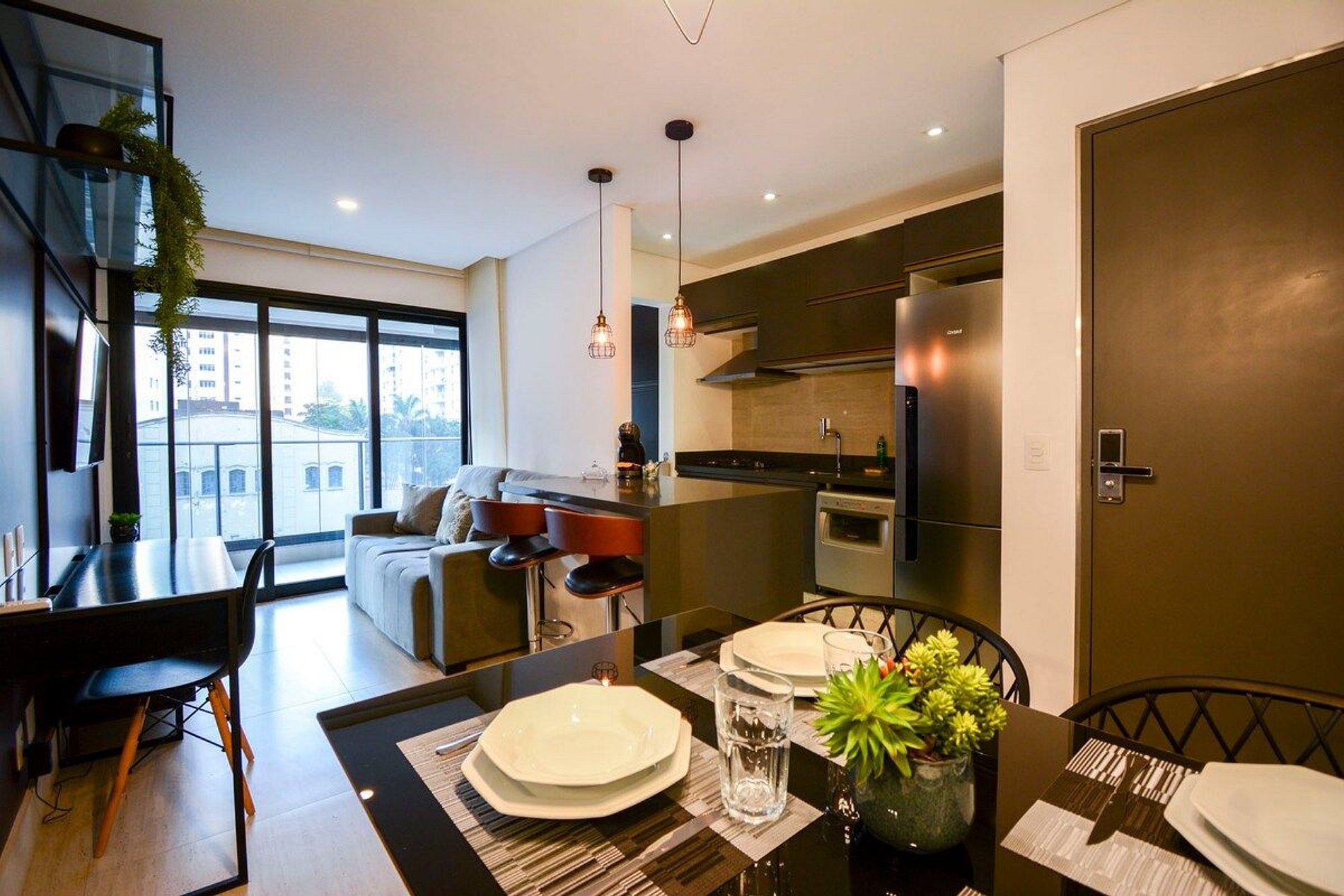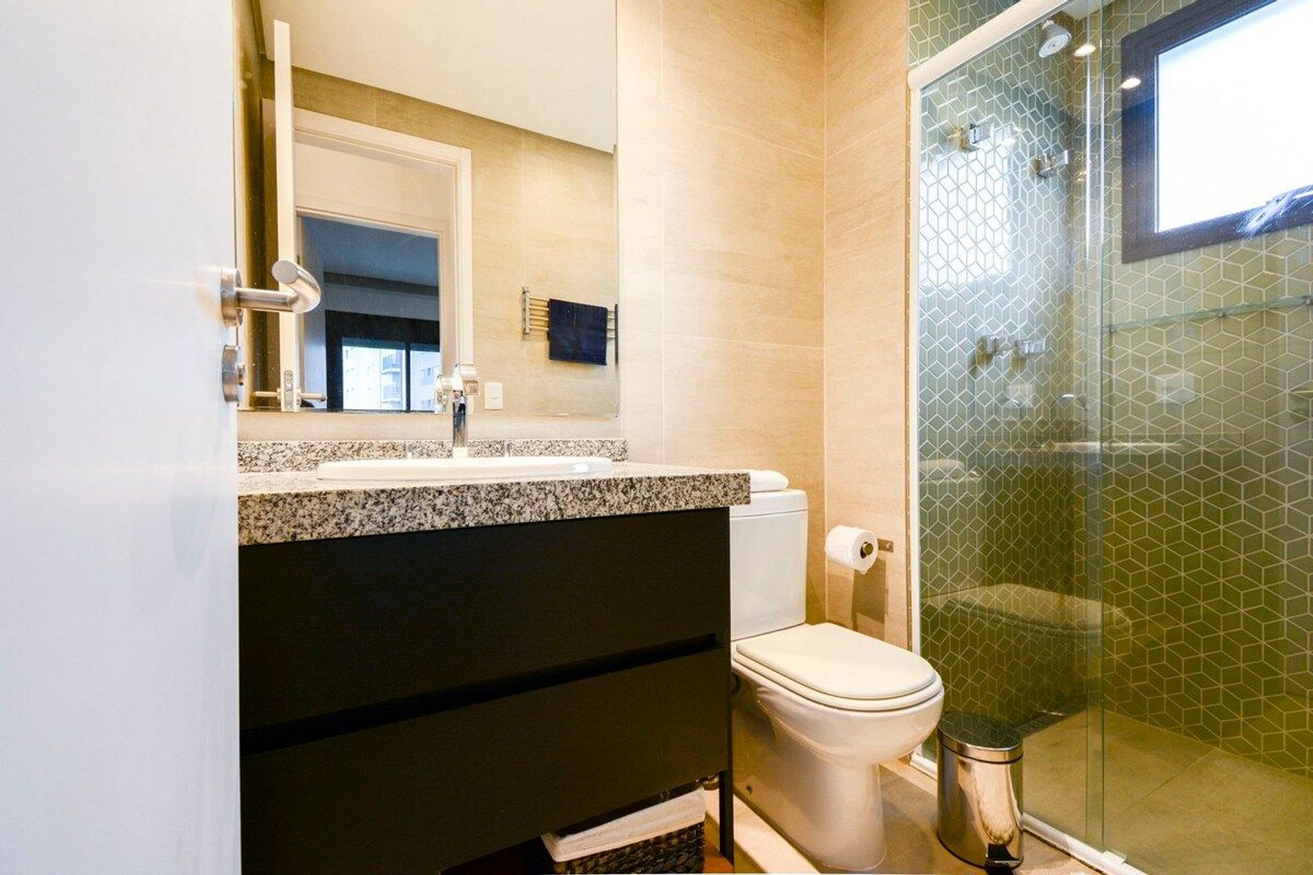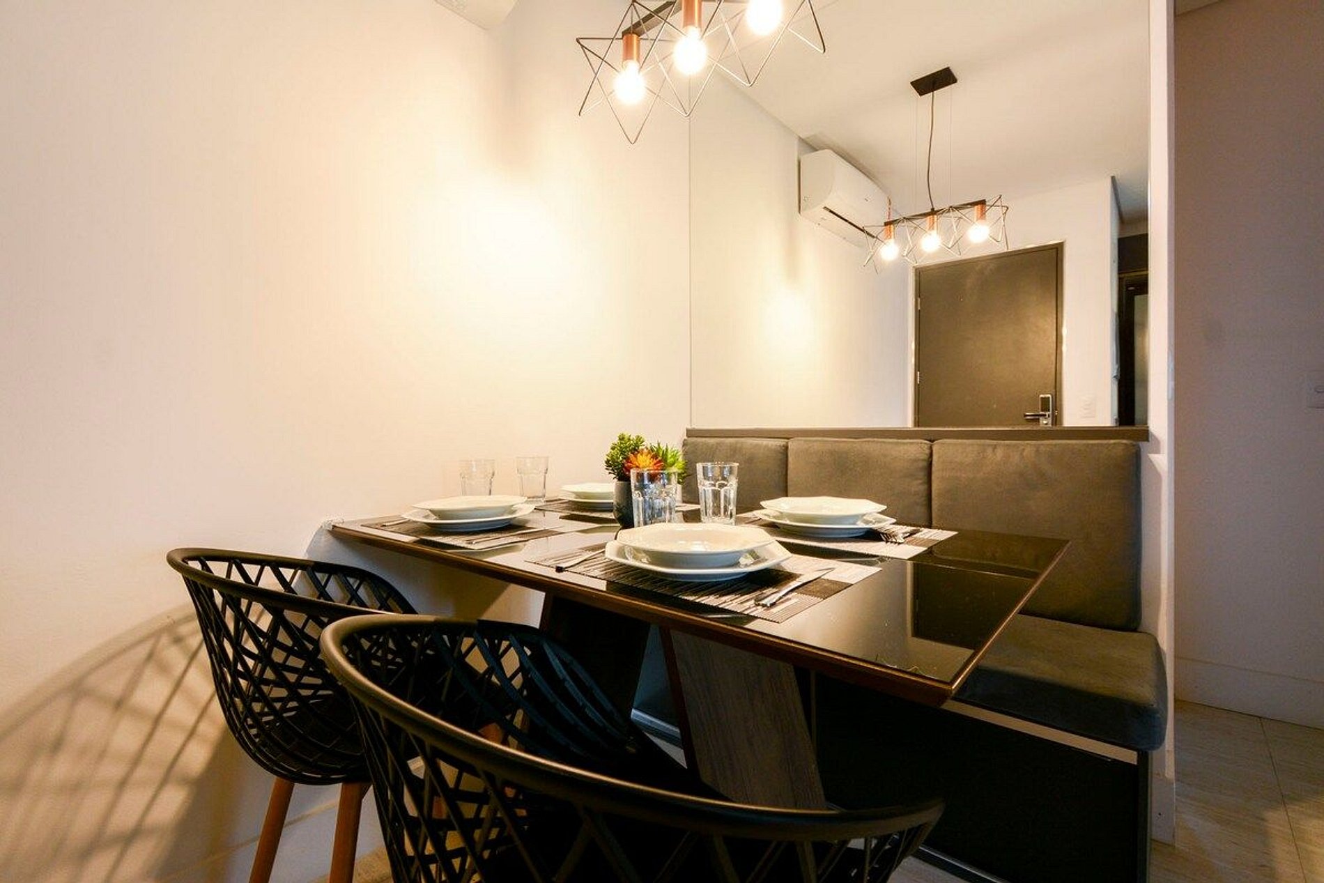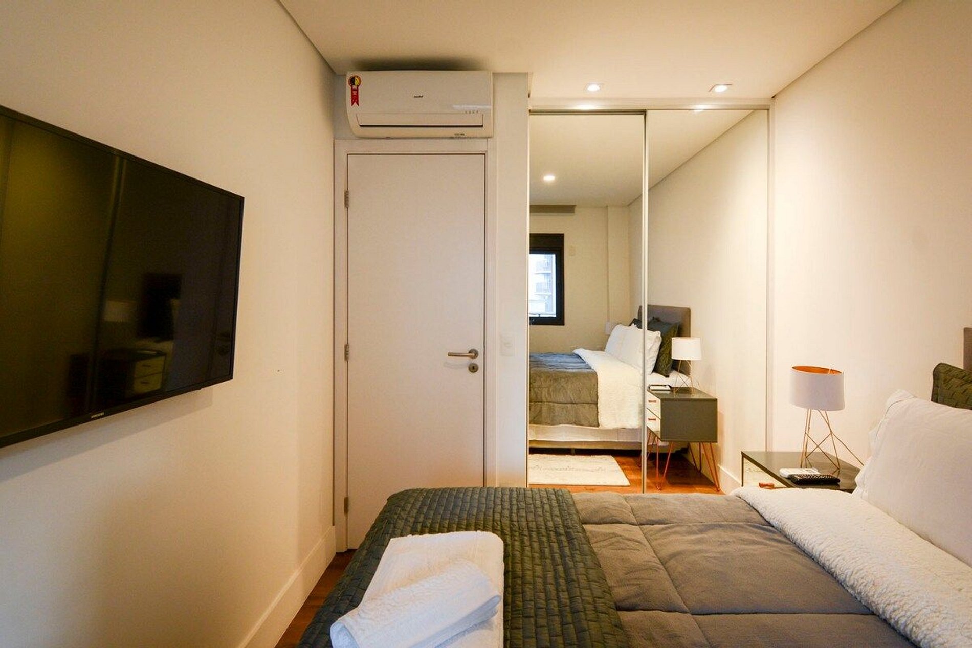 Apartamento decorado em condomínio de alto padrão, situado no coração da cidade, próximo ao hospital São Luiz do Itaim e a clínica OncoStar. Possui uma vaga de estacionamento, Wi-Fi e TV a cabo. Todas as áreas comuns do condomínio como piscina e academia podem ser utilizadas mediante agendamento.