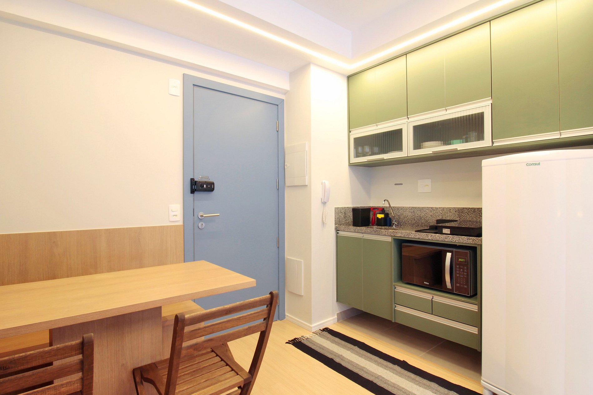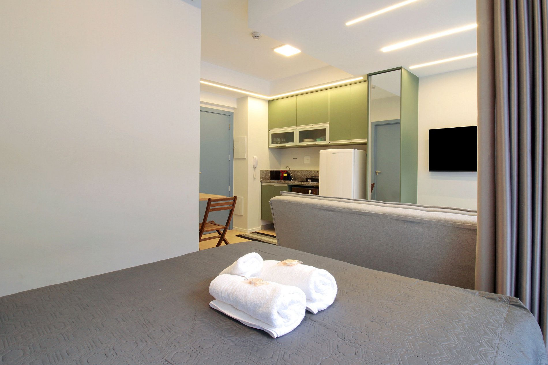 O apartamento acomoda até 4 pessoas, com uma cama de casal e um sofá-cama, separados por uma cortina de privacidade que garante conforto e independência aos hóspedes. Comodidades incluídas: Roupas de cama e banho limpas e de qualidade; Cozinha equipada com itens básicos para o preparo das suas refeições (pratos, talheres, panelas e utensílios essenciais); Ambiente agradável, funcional e ideal tanto para curtas estadias quanto para viagens a trabalho ou lazer.
